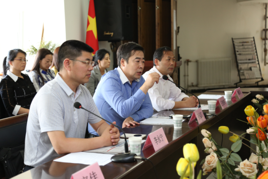图为:西法大新传孙江院长、王俊荣副院长、校教务处李永宁副处长一行与西部法制报座谈。