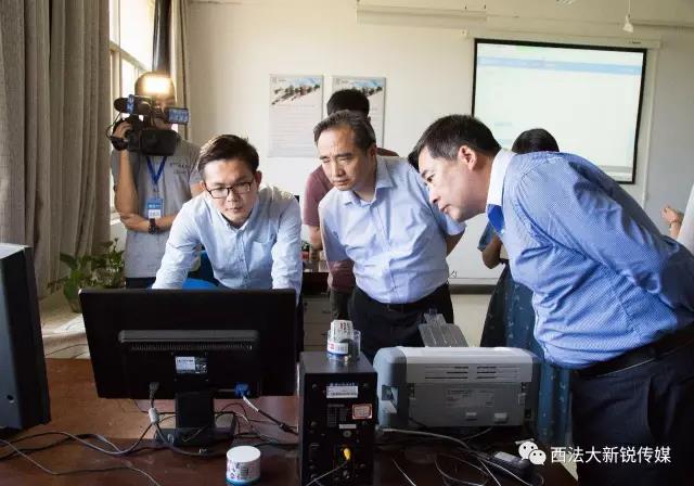 在电子采编实验室,黄进教授考察了展出的学生版面设计作品;在非线性编辑室,黄进教授仔细了解了“线性编辑”与“非线性编辑”的区别;在3D与新媒体实验室,黄进教授对根据校庆宣传图片中陕北公学、黄土高原等素材构建的3D复原模型赞叹连连;在录音室,黄进教授现场观摩了糖心vlog