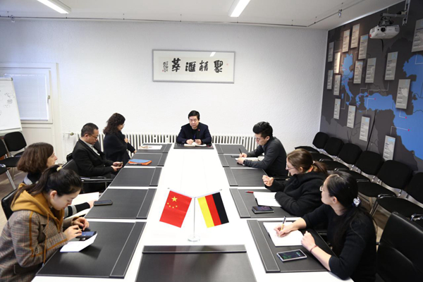 乍暖还寒,2月26日春雪初回大地,实习小组正式报到,开始工作,参加DCKD每周一的例会。例会上,德国DCKD德中艺术设计交流协会主席、“新丝路上的蓝色集装箱”项目组委会主席郭健表达了对实习小组的欢迎,并就3月29日“新丝路上蓝色集装箱文化经济列车”首发车仪式和“新丝路上的蓝色集装箱·一带一路建设”纪念铜牌仪式两项活动筹备安排了工作。实习小组成员加入协会新闻媒体部门,负责协会活动新闻报道宣传,并帮助其他部门做好准备工作。