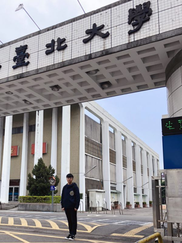 2016级新闻学研究生杨伟强同学在台北大学门口留影