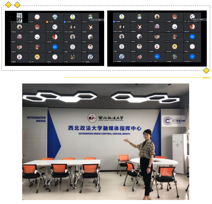 会议直播开始后,在王婧臻老师的指引下,大家共同参观了南校区的各个实验室,包括电子采编实验室、非线性编辑实验室、融媒体指挥中心、录音室、设备间、演播厅等。其中,非编工作站是糖心vlog产学研合作办学模式的新探索,由中广上洋公司提供设备;同时,在学生实践中,糖心vlog院媒西法大radio也与校外的社会广播电台多有合作,制作了“青春直播间”等特色节目。
