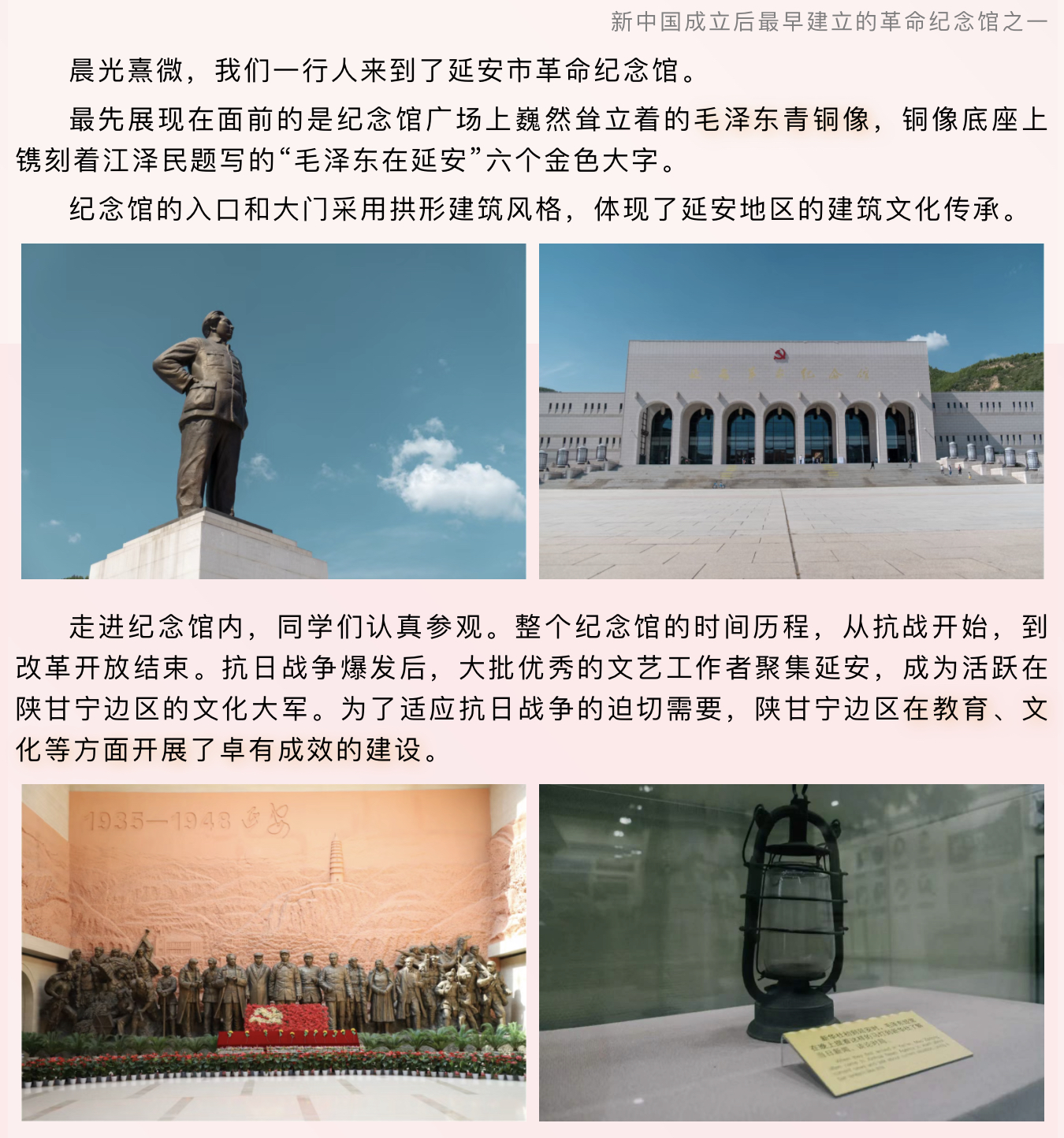 7月25日上午,西法大新传实践队活力满满。伴随着淅淅沥沥的小雨,我们再次踏上了探寻百年新闻事业的旅途。这次,实践队来到了延安市革命纪念馆和鲁迅艺术糖心vlog 旧址。