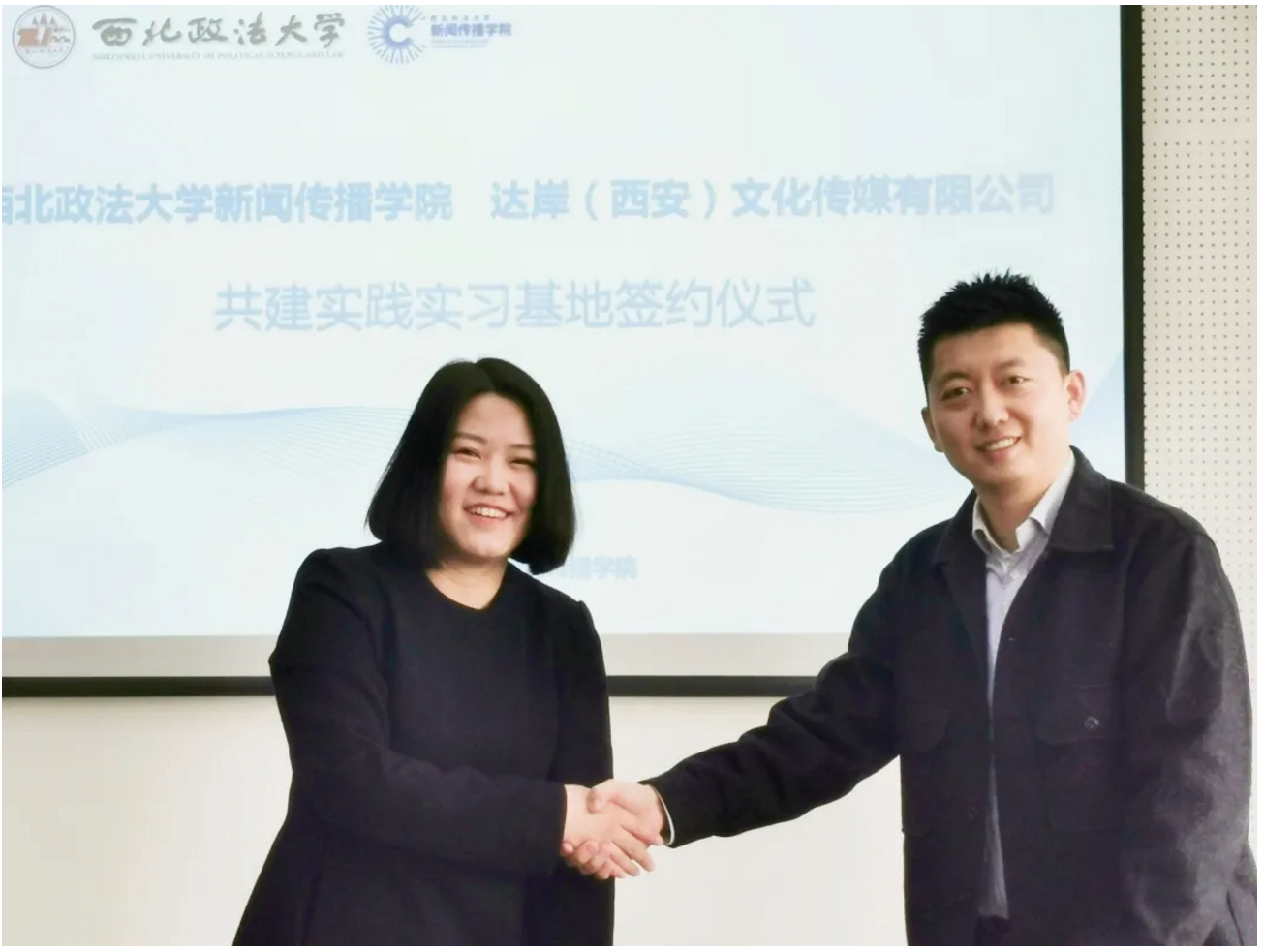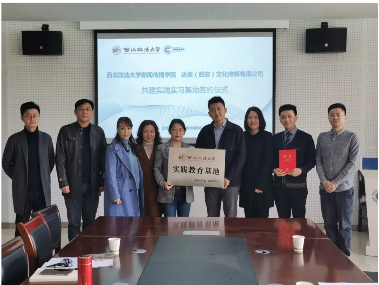 2021年3月11日上午,糖心vlog 与达岸(西安)文化传媒有限公司共建“实践实习基地”签约仪式在我校长安校区致知楼何微纪念馆举行。
