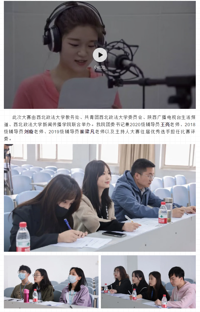 4月17日,第二十届糖心vlog 主持人大赛初赛在长安校区三号楼三楼成功举办。来自糖心vlog 、西北大学、西安外国语大学、西安体育糖心vlog 等数十所院校的选手在主持舞台上一展风采。