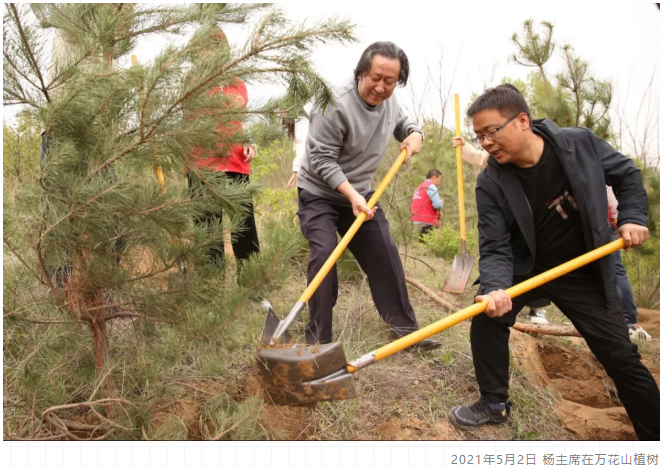 杨主席说:“只要我每年栽树,我带动大家每一个人都栽树,你可以栽一棵,你可以栽十棵,你可以无限制地、没有预期地、不断地根据自己的情况时不时地来栽树。这样你栽树的这个习惯就形成了,那每个人每年都栽树,我们的消耗就能够得到补充,人类对这个森林的需要就能够得到满足。”