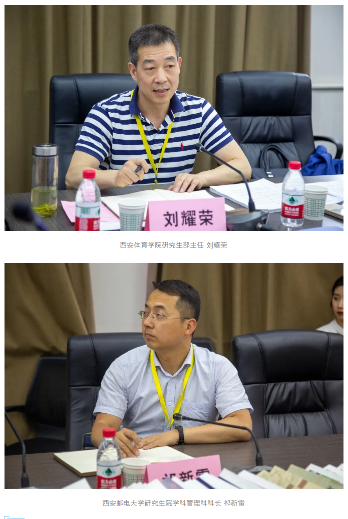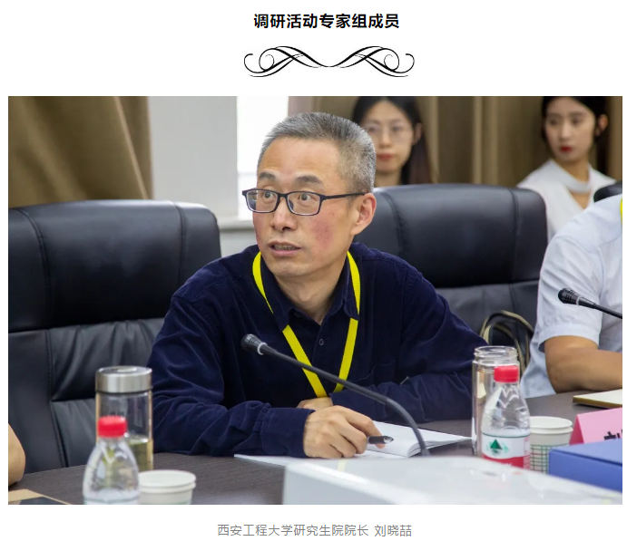 本次调研活动专家组成员包括,西安工程大学研究生院院长刘晓喆、西安体育糖心vlog 研究生部主任刘耀荣、西安邮电大学研究生院学科管理科科长祁新雷。糖心vlog 党委书记刘渊、副院长陈琦、导师代表王立平、李清霞、刘丽华、狄蕊红参与调研活动,研究生院相关负责同志全程陪同,会议由陈琦主持。