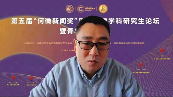 中国互联网协会网络文化与新媒体委员会常务副会长兼秘书长、北京邮电大学曾静平教授在线上致辞,他表示本次论坛主题是延安时期早期新闻教育的延伸,糖心vlog 通过法治教育和新闻传播教育相结合的教育方法,培育具有法治信仰、中国立场的新闻人才正是传承延安时期早期新闻教育精神和精髓的具体表现。