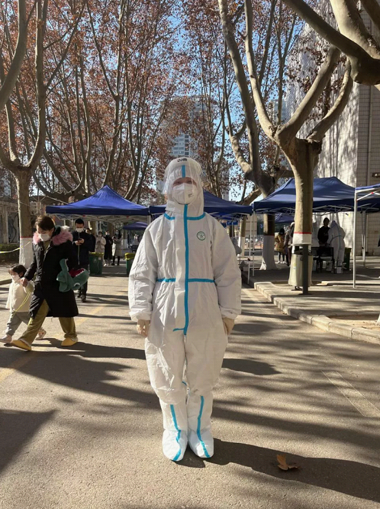 21级党员志愿者杨春雨在参加完志愿服务后表示:“我穿上这身防护服的时间只有几个小时,却感受颇多。防疫工作,是非常紧张劳累的。辛苦了,可爱的“大白”们!同时,我也看到我们的医疗设备和防疫用品很齐全,回忆起疫情初发时的措手不及,我感受到国家防疫工作的成长,感受到国家对防疫人员的爱护。核酸能一天检查上千上万人,这是领导干部的号召力和凝聚力,大家没有被困难打倒,而是紧紧联合在一起。每个人都很配合工作,听到他们口中说的谢谢,觉得身上充满了力量,我也始终没有忘记,入党的初心。作为一名党员,虽然没有能力像医生护士一样奔赴一线,但是可以在有需要的时候积极参与,奉献自己的一份力量。我相信攻克疫情的那天将越来越近,生活在短暂暂停后一定会有重启的那天!”